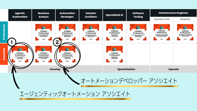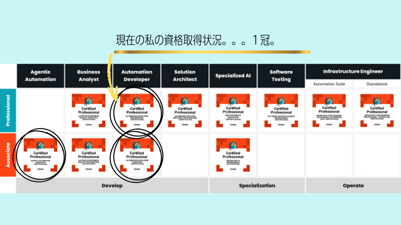 はじめに この記事はUiPathブログ発信チャレンジ2025サマーの16日目の記事です。 2025/6/13時点で日本語版がリリースされているUiPathプロフェッショナル認定資格(下図の5種類)を制覇したので、それぞれの認定資格の違い、そ...